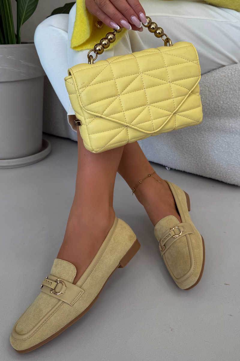 Mocassins femininos amarelos com elementos decorativos Evelora