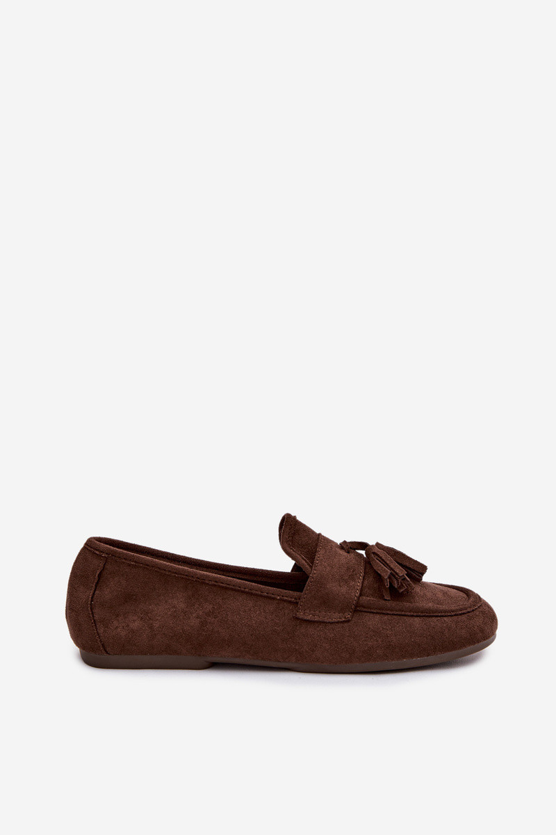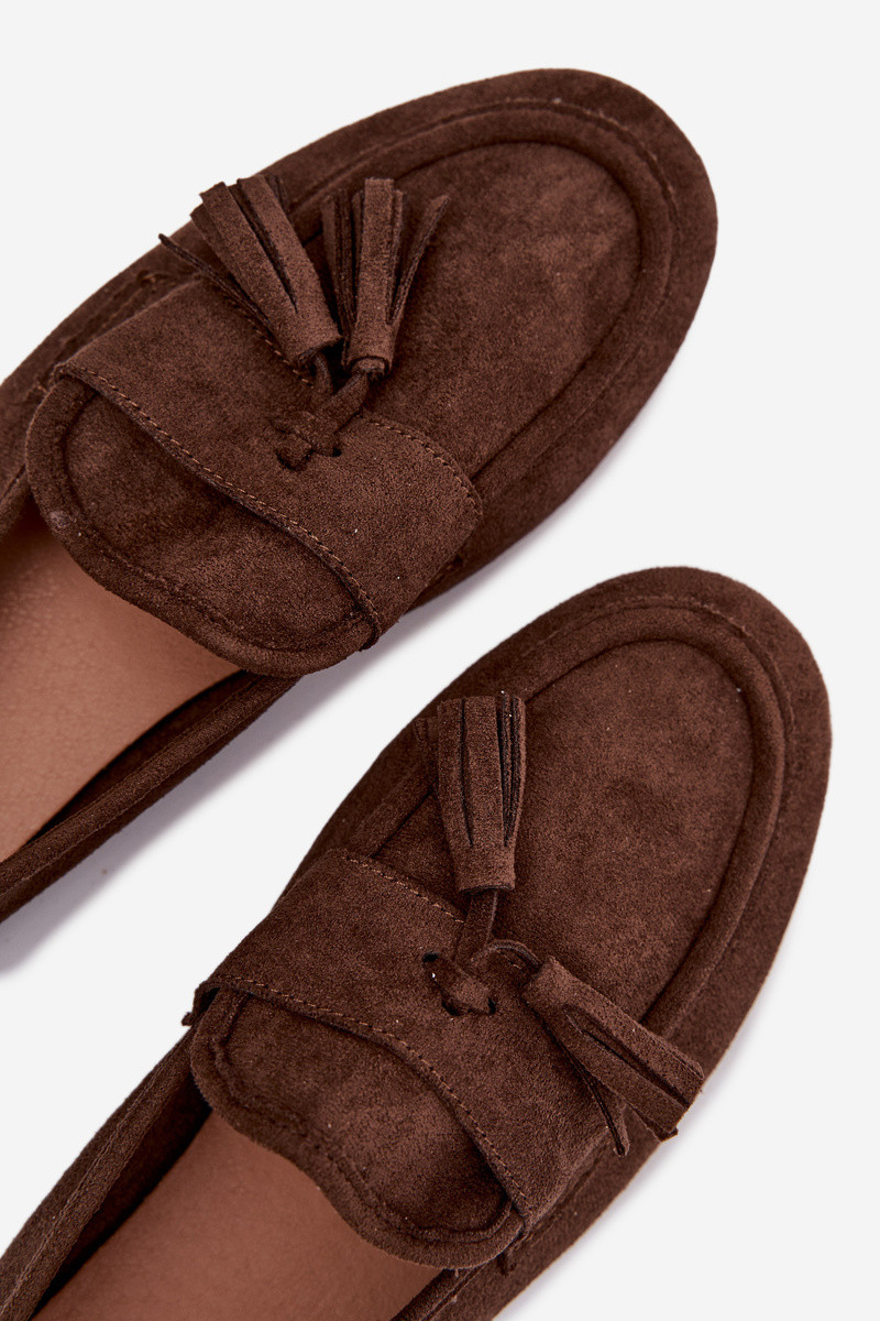 Mocassins femininos com franjas na cor chocolate