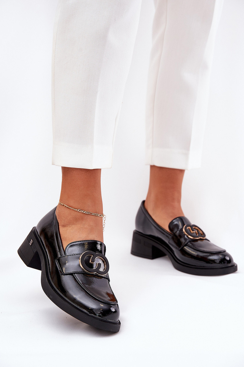 Mocassins de couro envernizado com saltos pretos Vinceza 18102