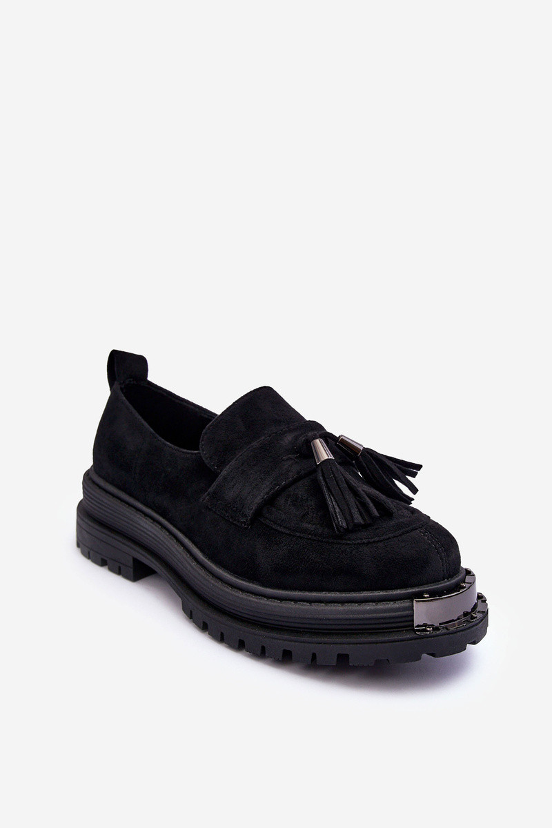 Sapatos femininos de couro elegantes com saltos largos pretos Zazoo 20174