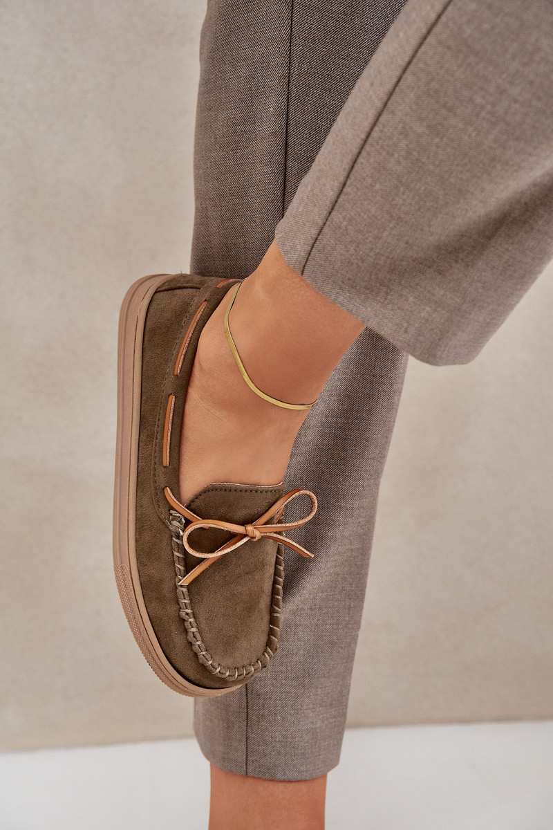 mocassins femininos Em sola plana cor cáqui Timannie