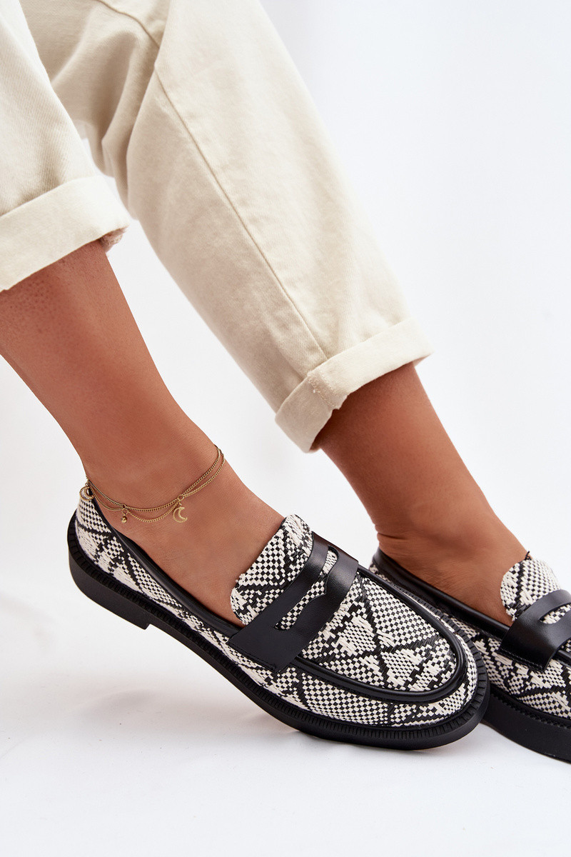 Mocassins femininos estampados na cor preta Barisa