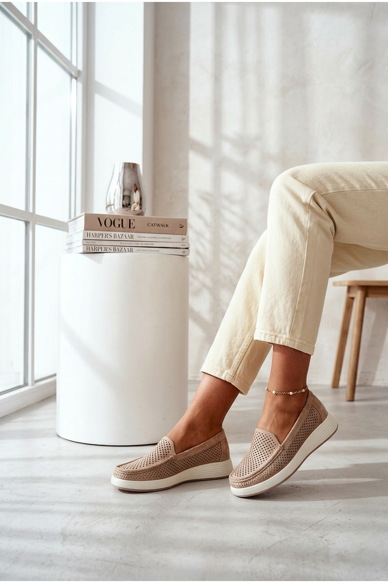 Mocassins femininos com detalhes de perfuração Sergio Leone MK097H cor dourada