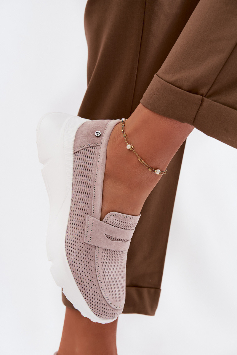 Mocassins femininos de camurça natural com plataforma Vinceza 79626 cor areia