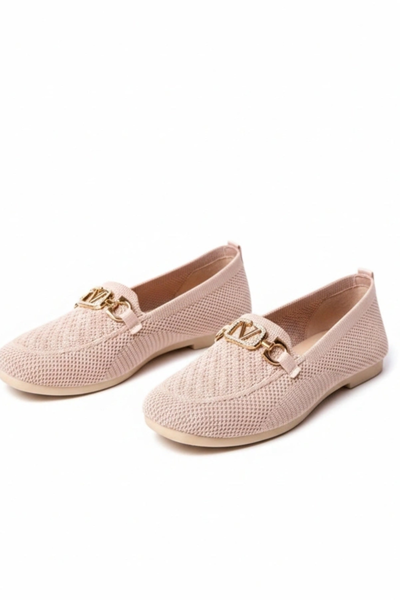 Mocassins rosa de tecido com decoração dourada Mathilde
