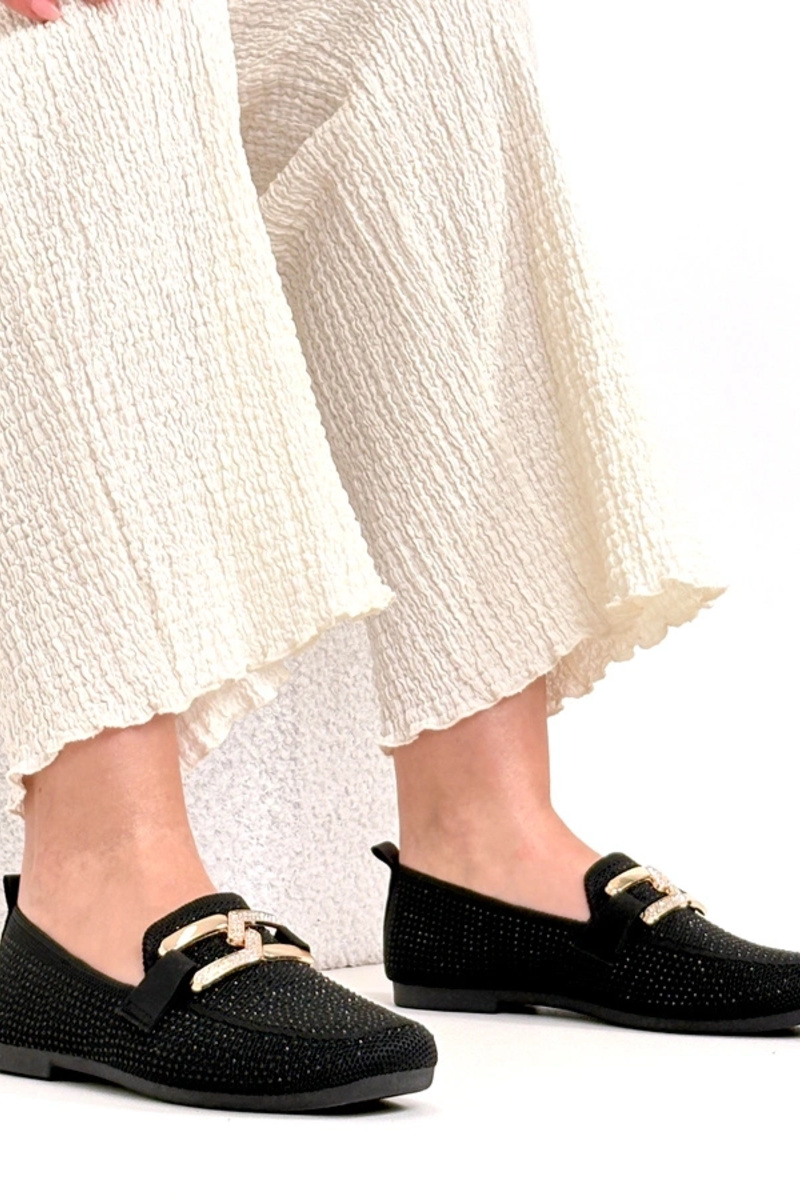 Mocassins de camurça com enfeites na cor preta Loraleima