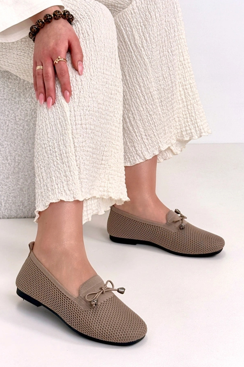 Mocassins de tecido na cor areia escura com laço Aubrey