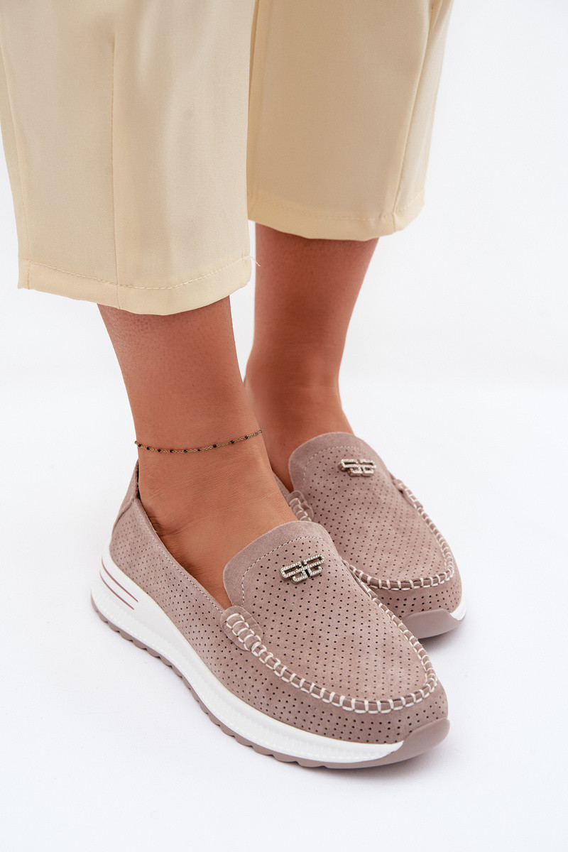 mocassins femininosHabilitadoturalnego de camurçau bege Demela
