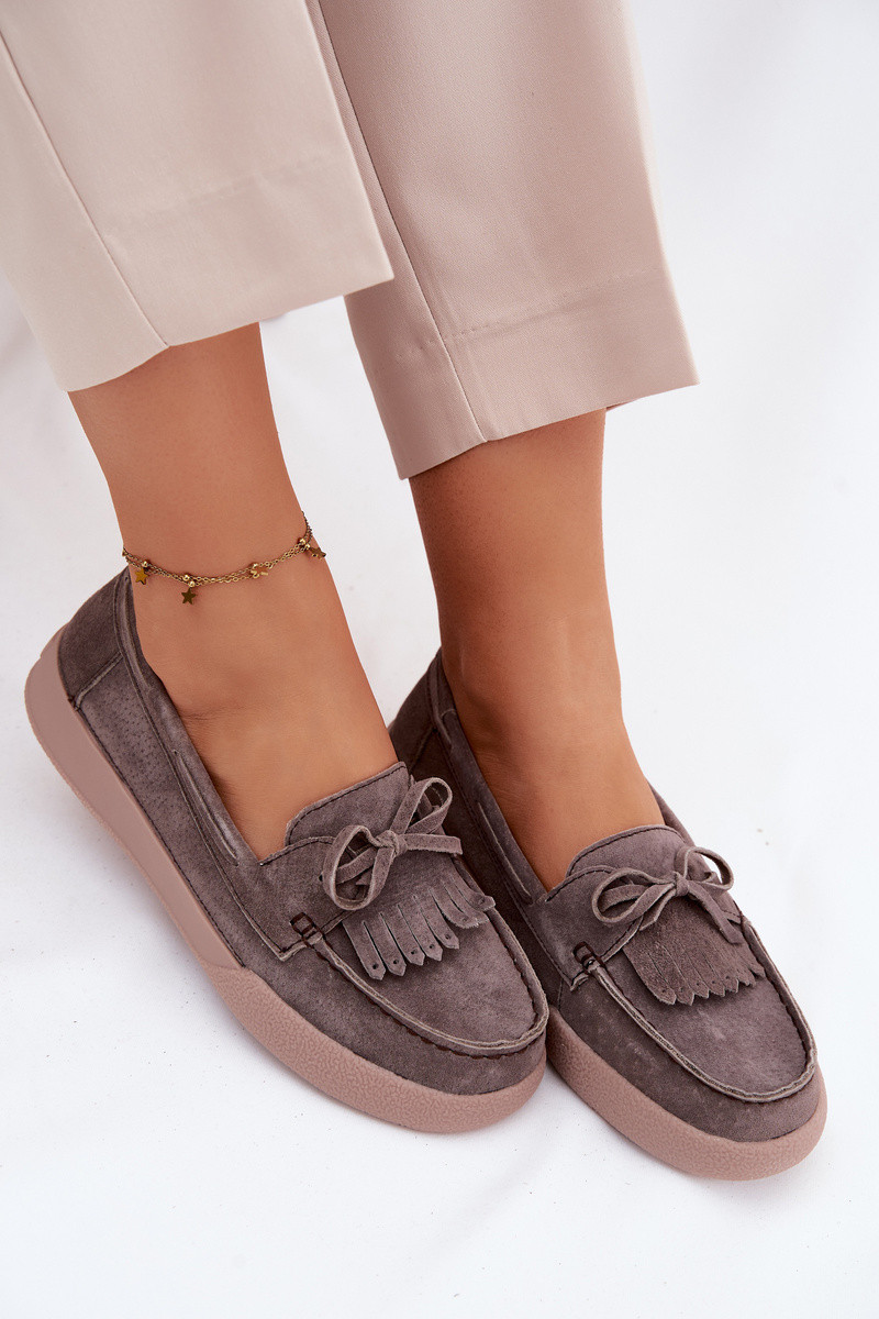 Mocassins de mulher em camurça com laços e franjas Vinceza 93223 em castanho