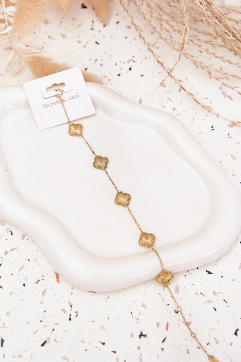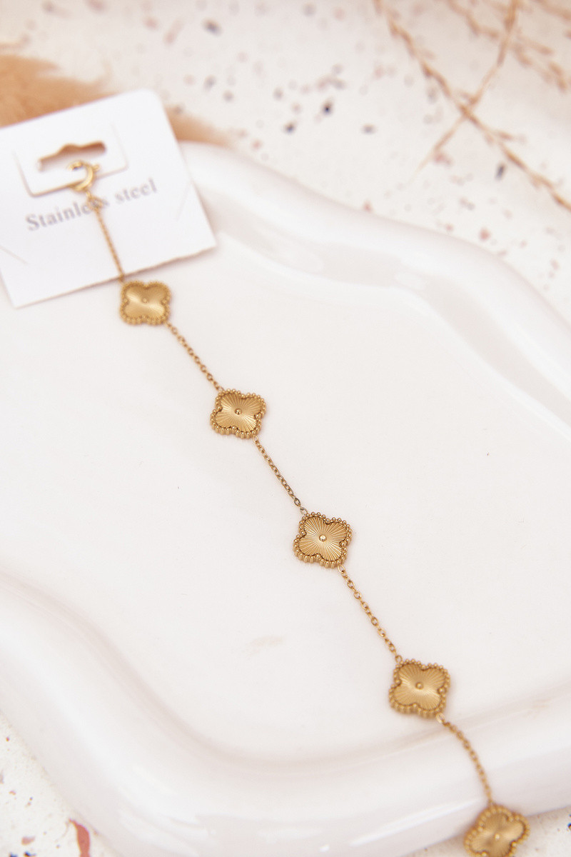 Pulseira de aço inoxidável dourada com motivos florais
