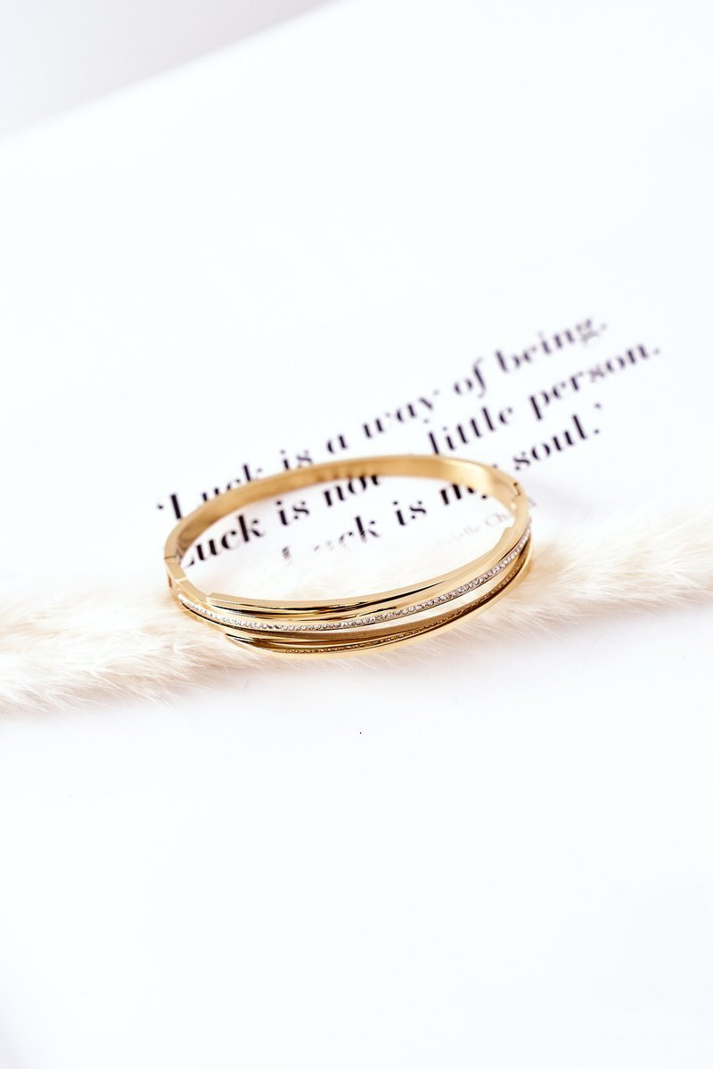 Pulseira de aço inoxidável dourada com pedras brilhantes