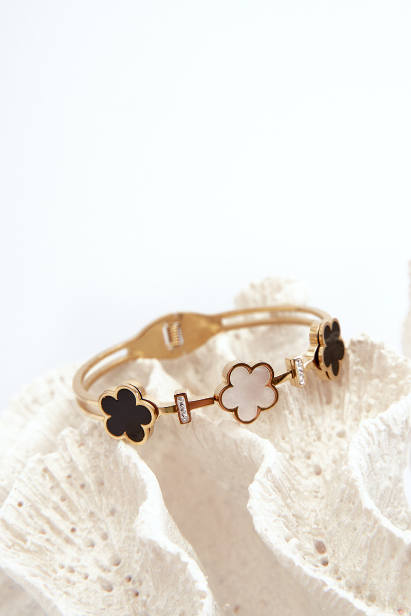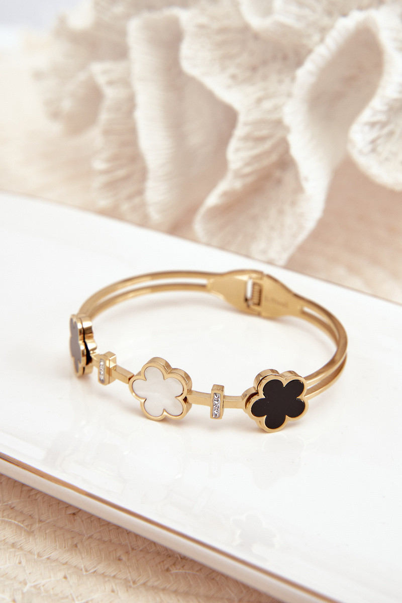Pulseira feminina com flores em aço inoxidável na cor dourada