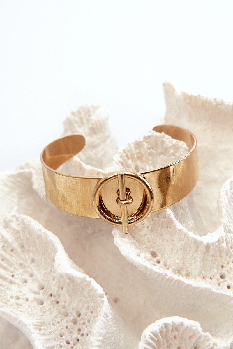Um bracelete Feminino com enfeites Stal NierdzeParana cor dourada