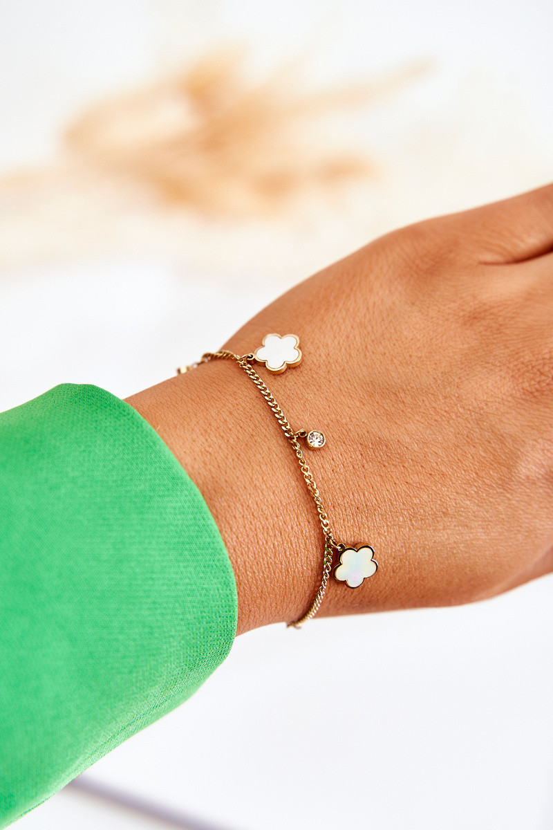 Um bracelete com uma corrente com flores ouro-Branco