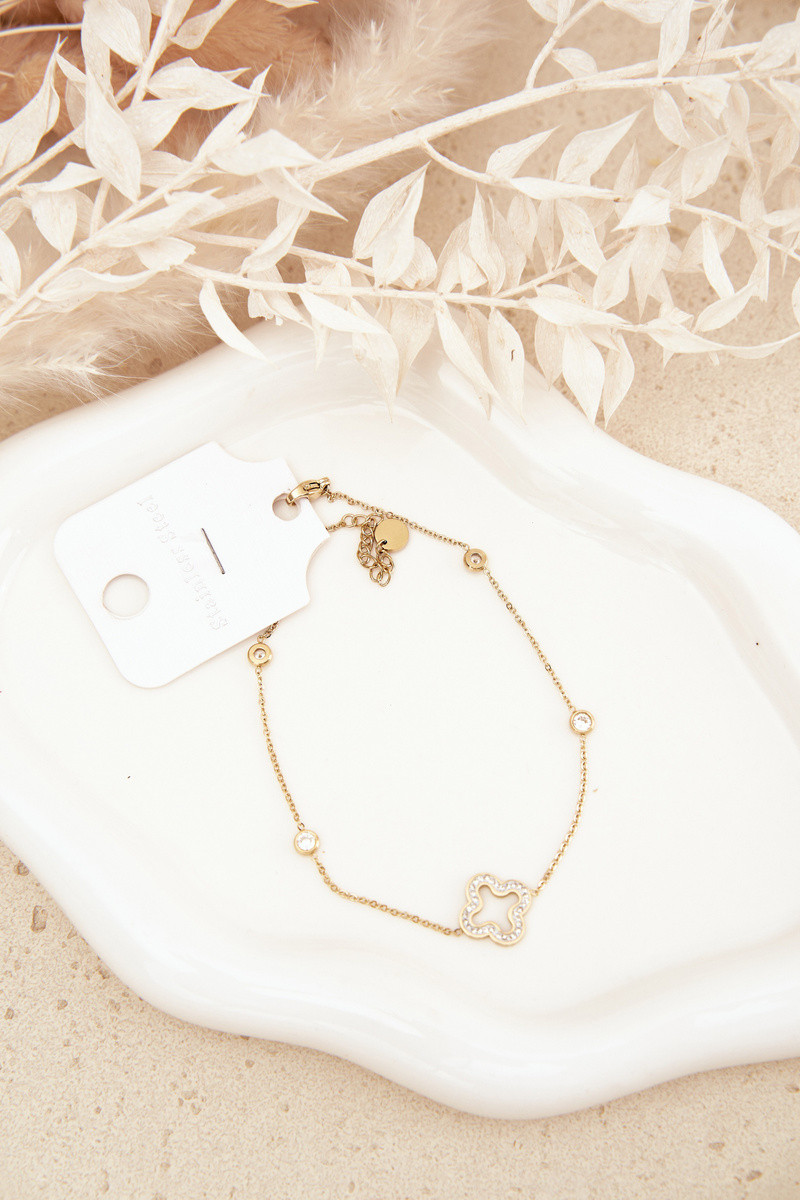 Pulseira de tornozelo com trevo cor dourada