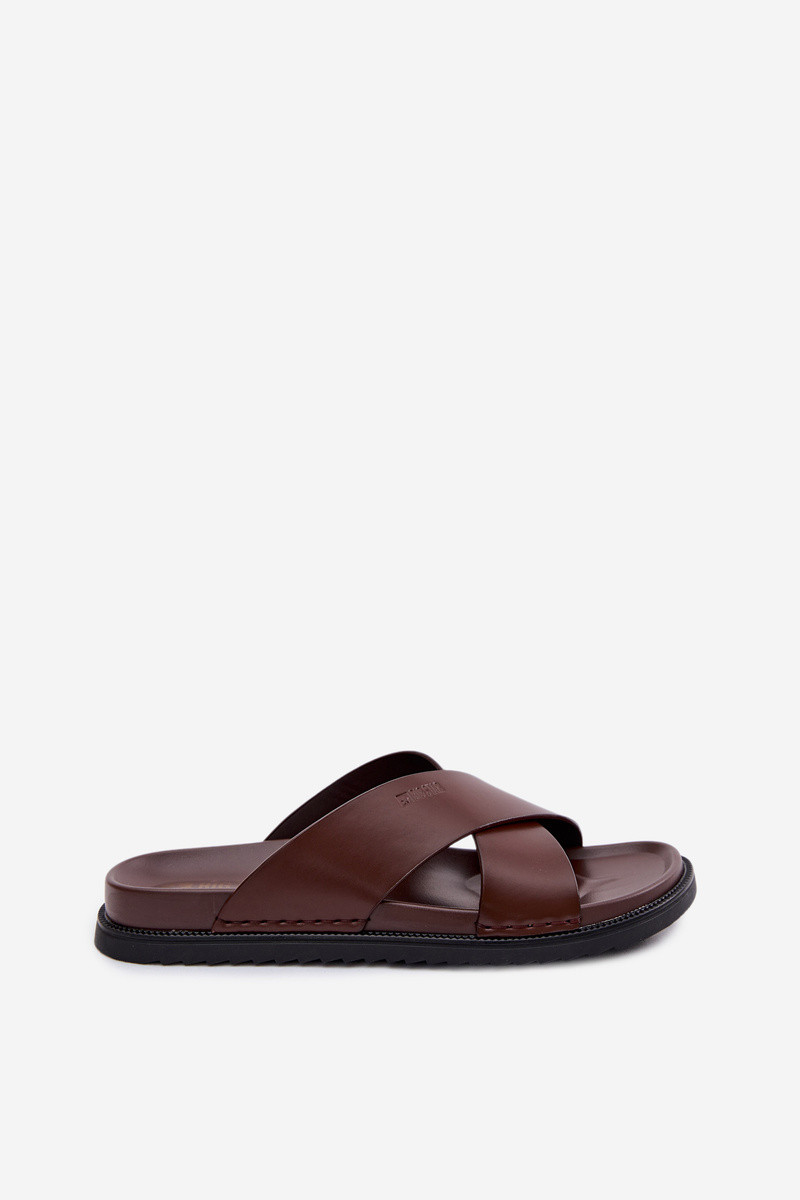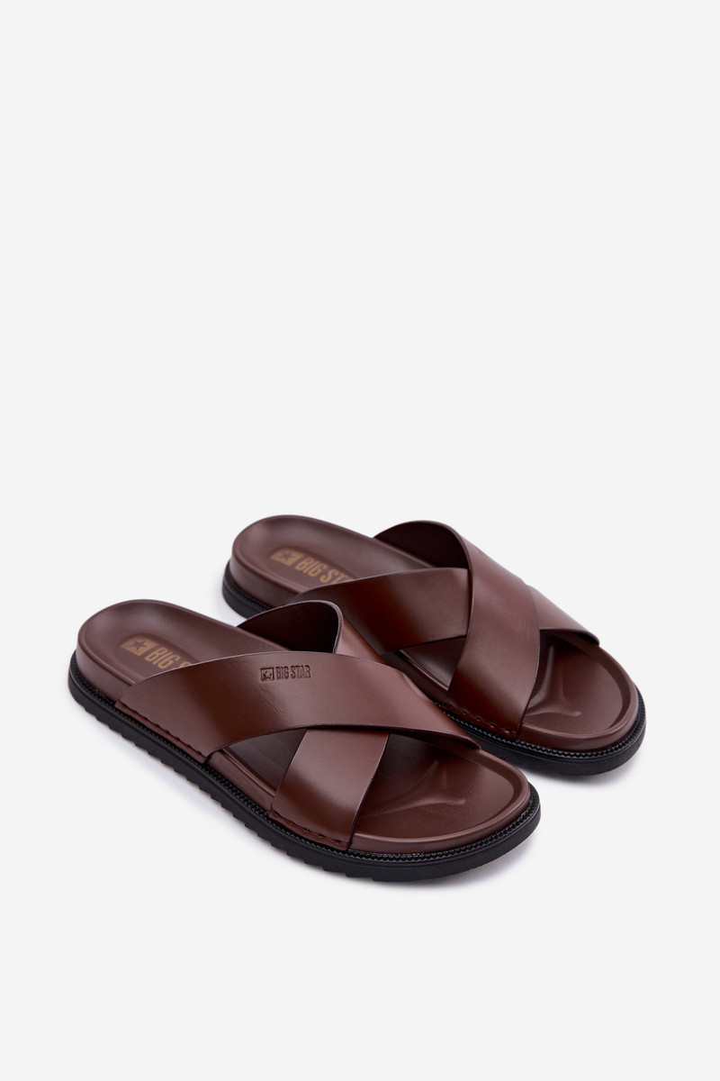 Chinelas de couro masculinas Big Star TT174218 na cor marrom escuro