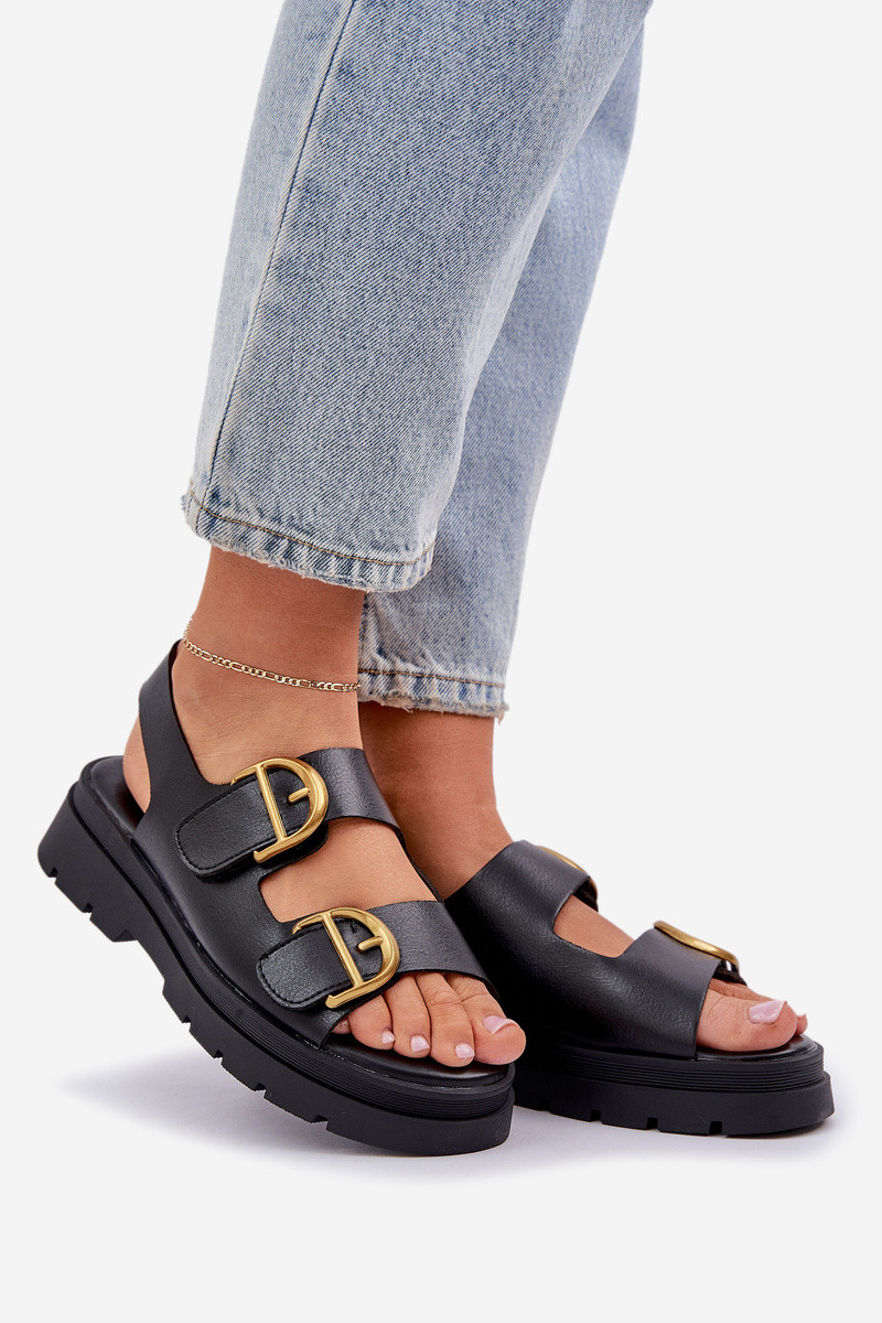 Sandálias femininas de couro sintético com fivelas pretas Vulinea