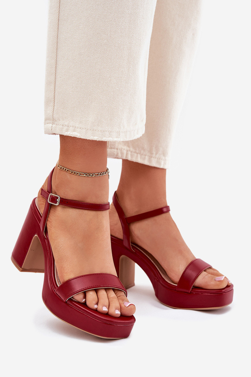 Sandálias femininas de couro sintético com salto Lillita na cor bordô
