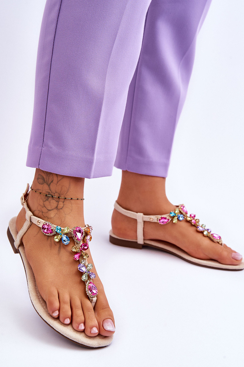 Sandálias-chinelas de camurça com decoração de pedras na cor areia Frency