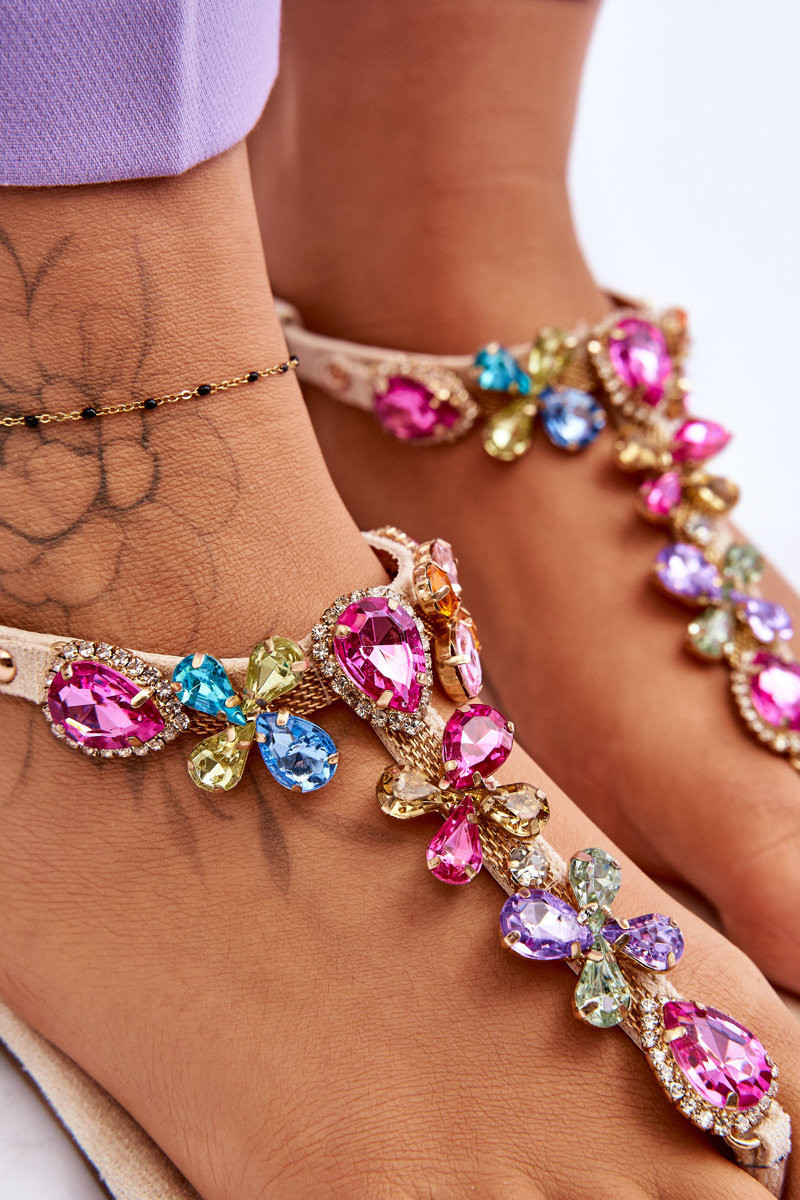 Sandálias de camurça Chinelos com decoração de seixos bege Frency