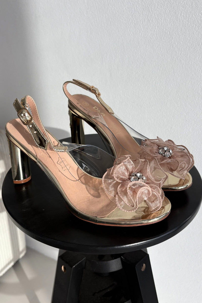 sandálias com salto com enfeites I Kryształkami D&A MR52-236 cor dourada
