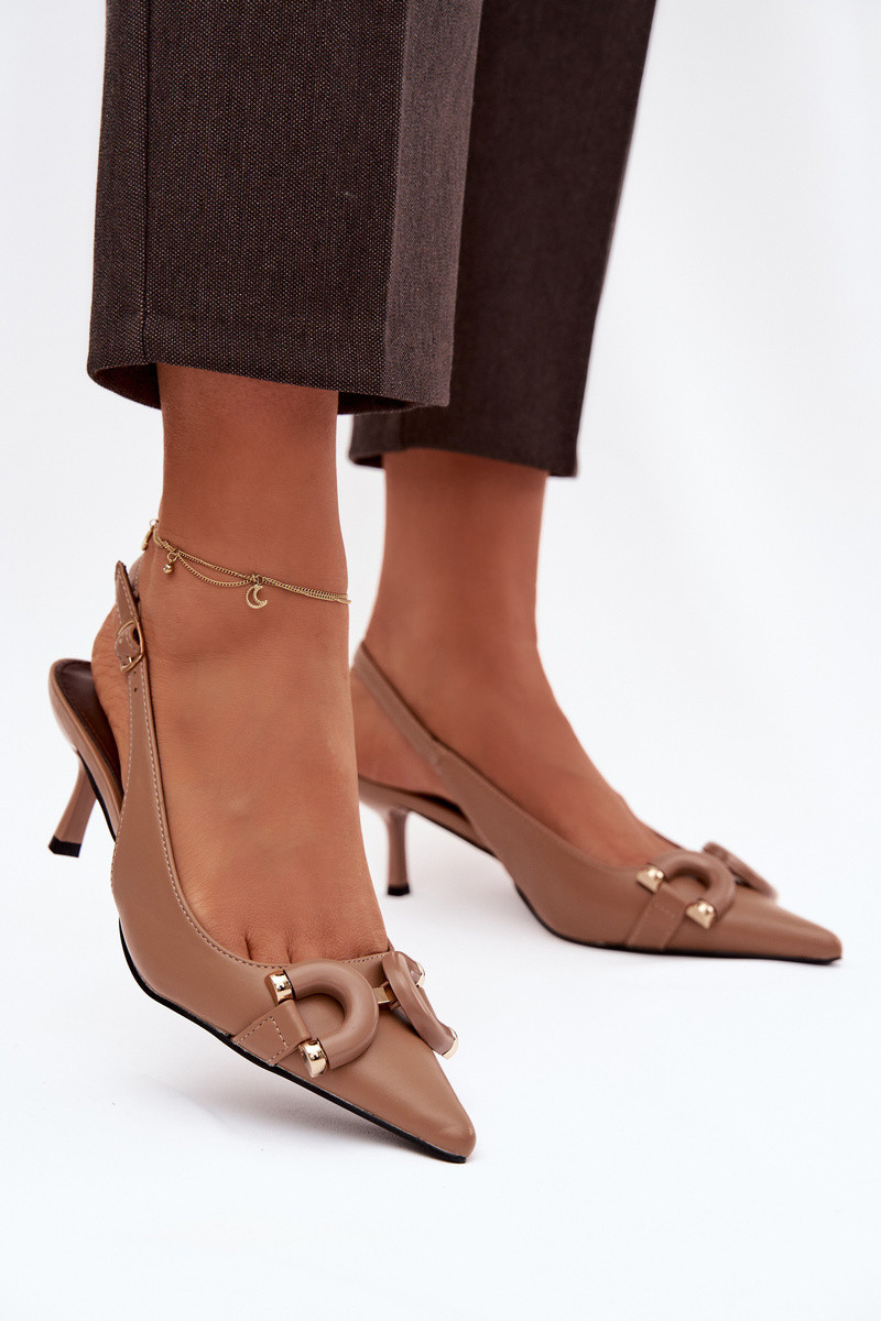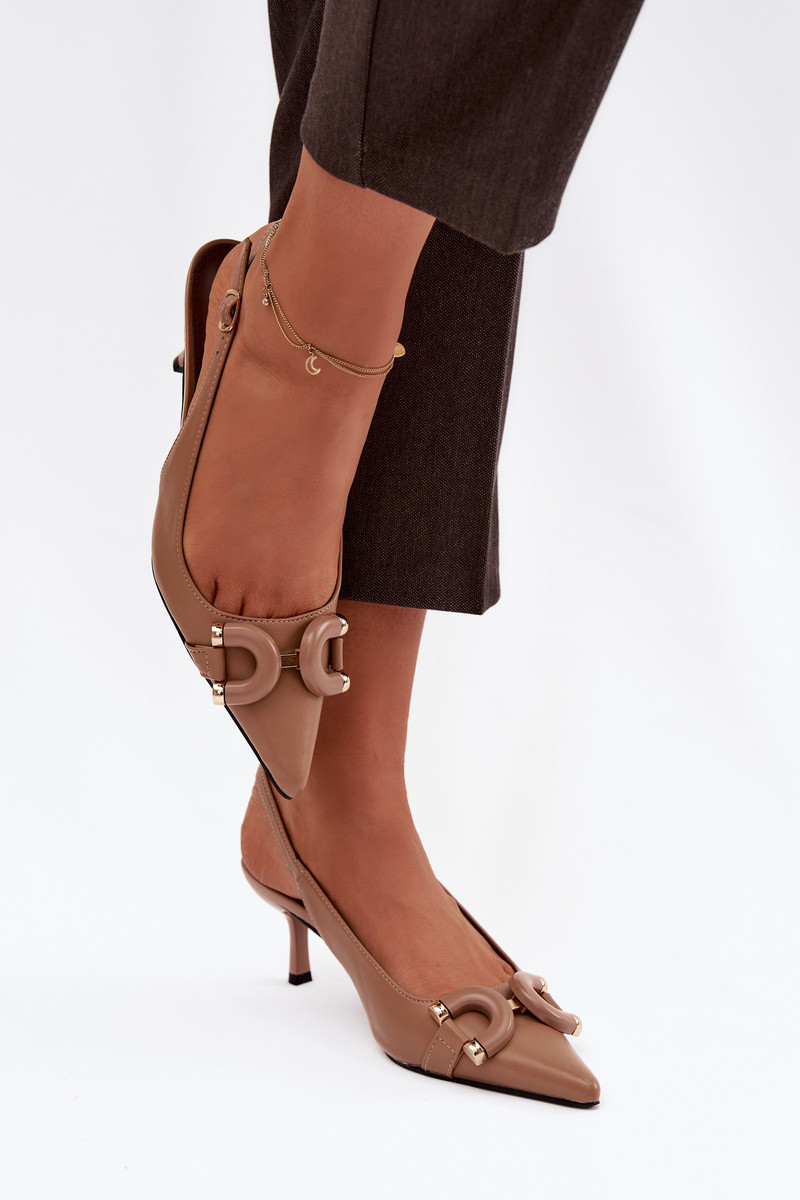 Sandálias femininas com salto fino Com decorações Detalem cor marrom Brienne