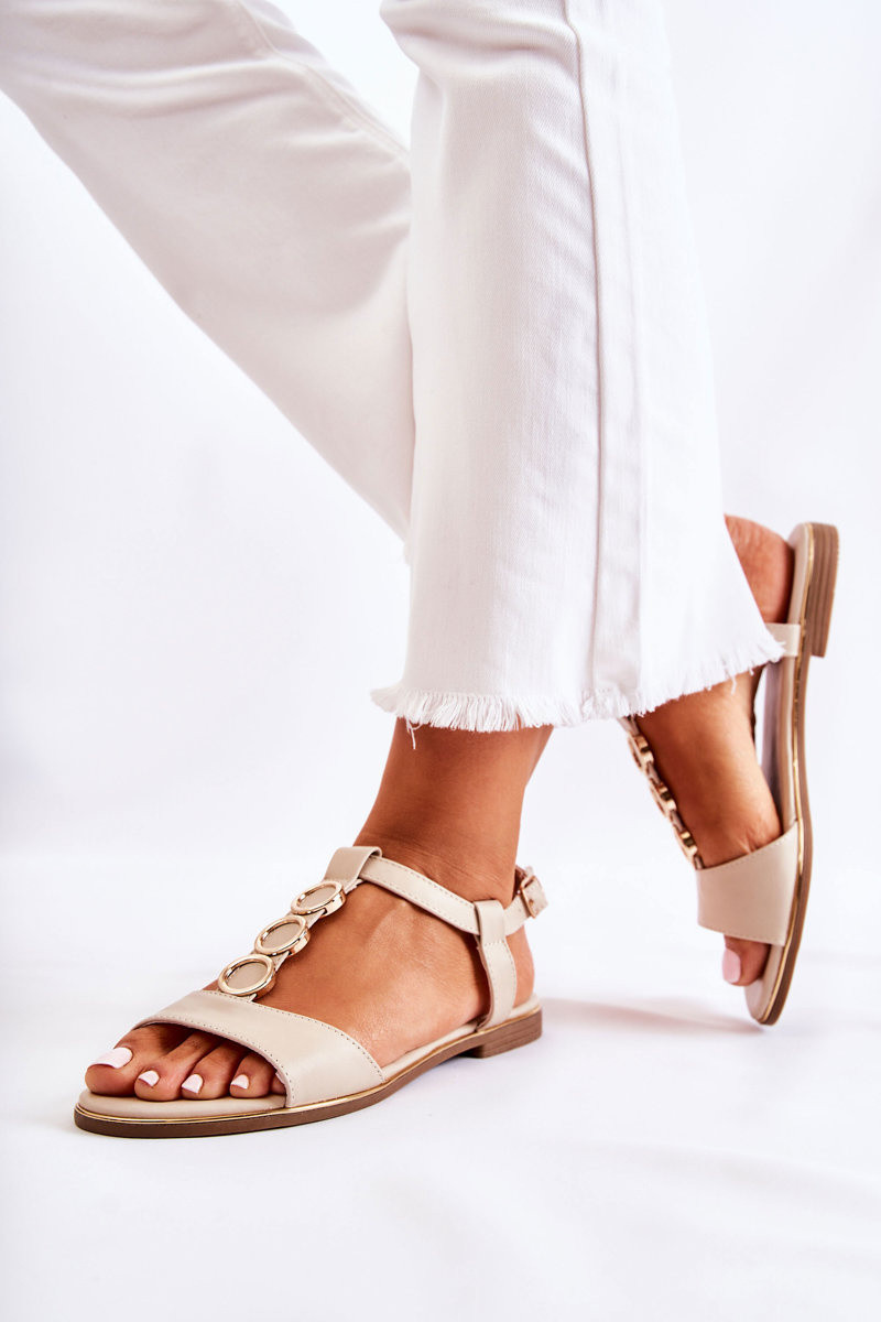 Sandálias femininas de modelo clássico com saltos decorados na cor areia Terina