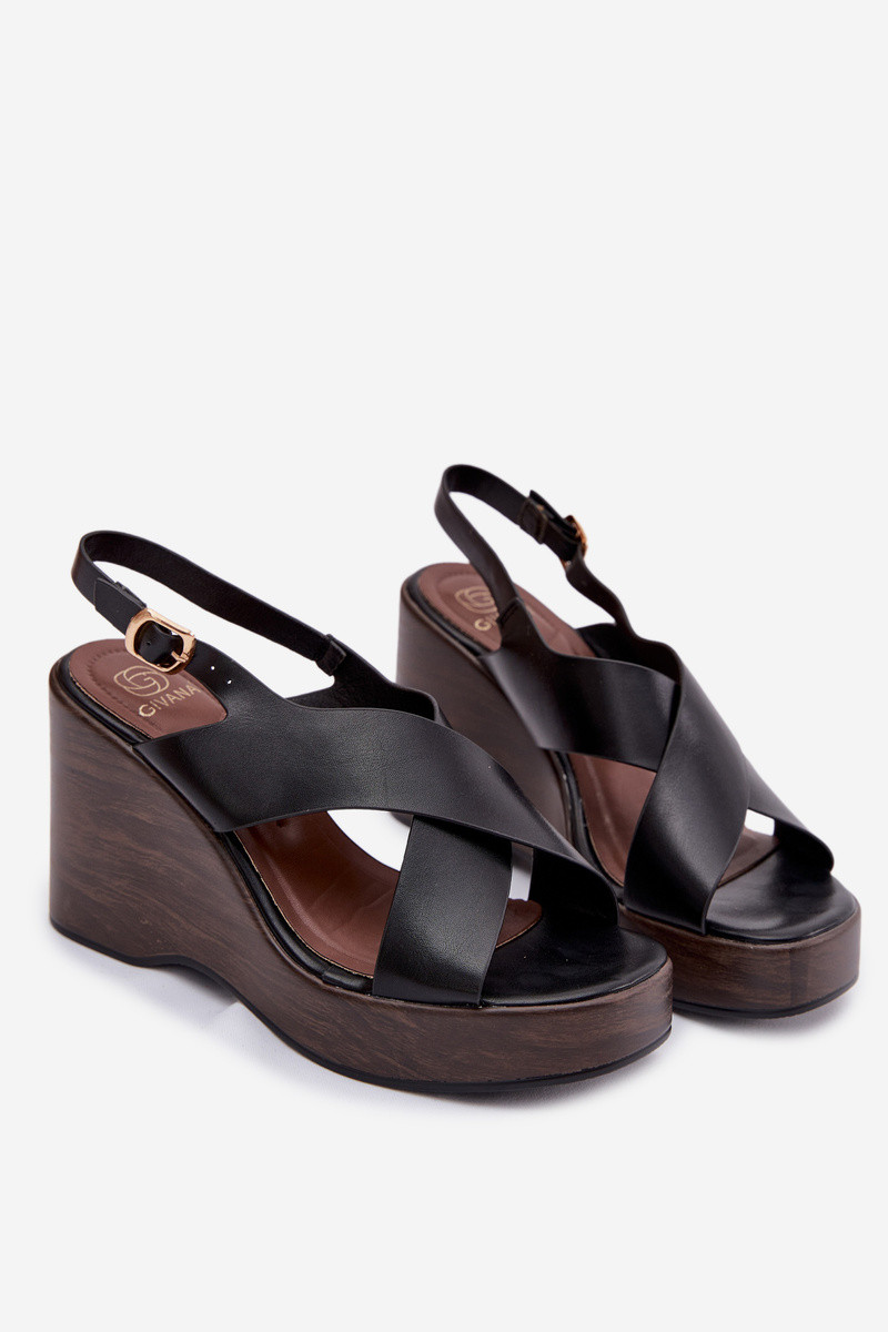 Sandálias femininas de couro ecológico Habilitado coturnoie cor preta Janivra