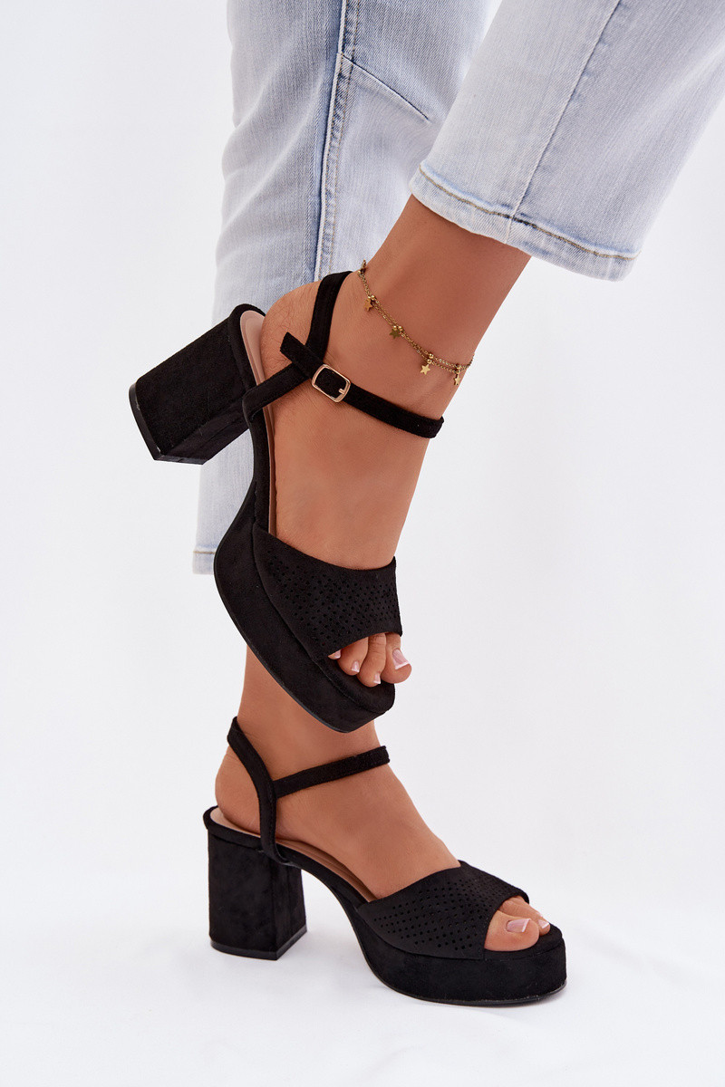 Sandálias femininas de salto altode camurça ecológicau cor preta Iserelle