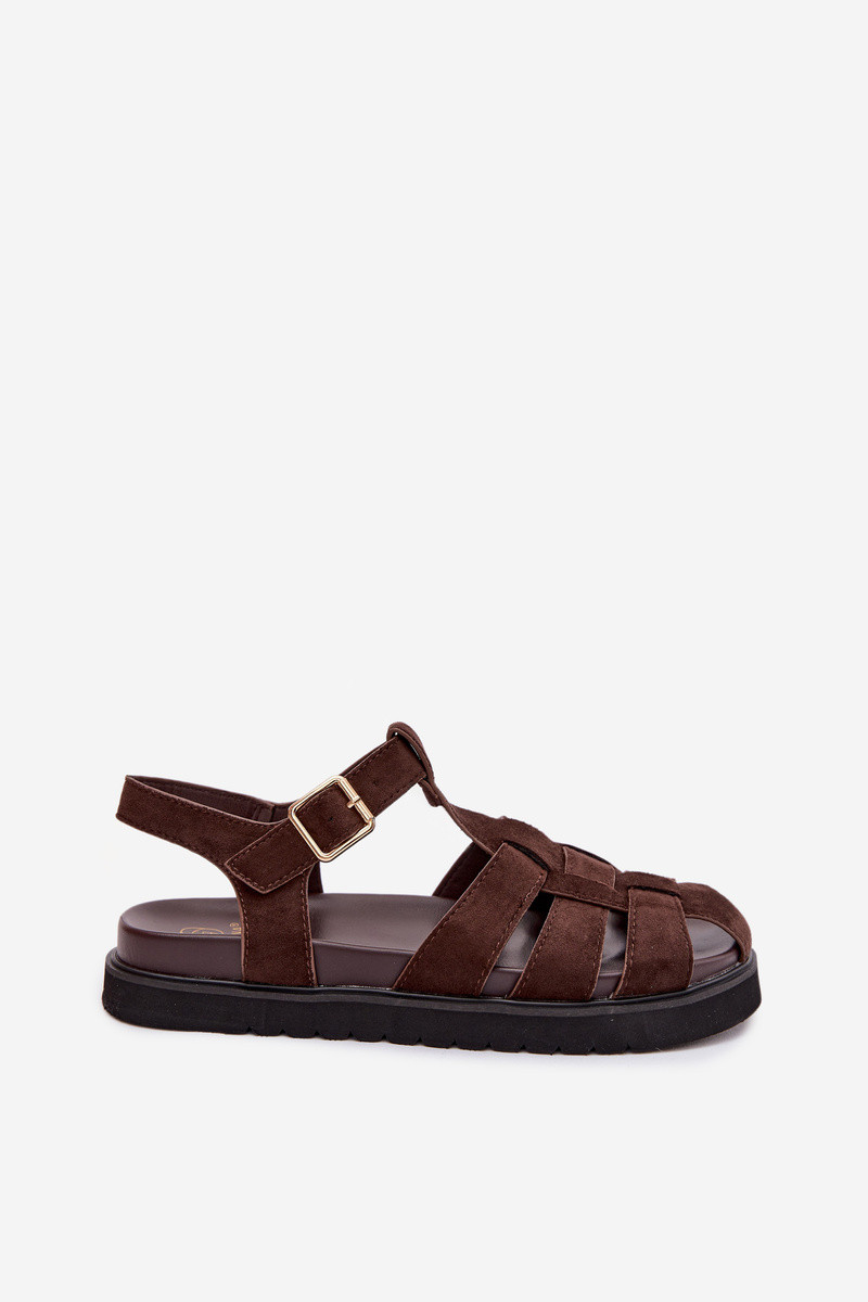 Sandálias romanas femininas com fivelas douradas e plataforma cor chocolate Terelina