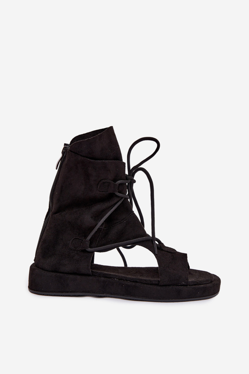 Sandálias femininas em camurça sintética com cano e cadarços cor preta Ferlisse