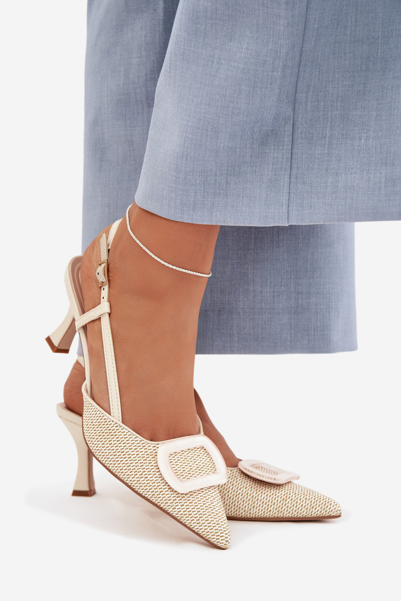 Sandálias femininas com salto Com decorações Elemento bege Eslina