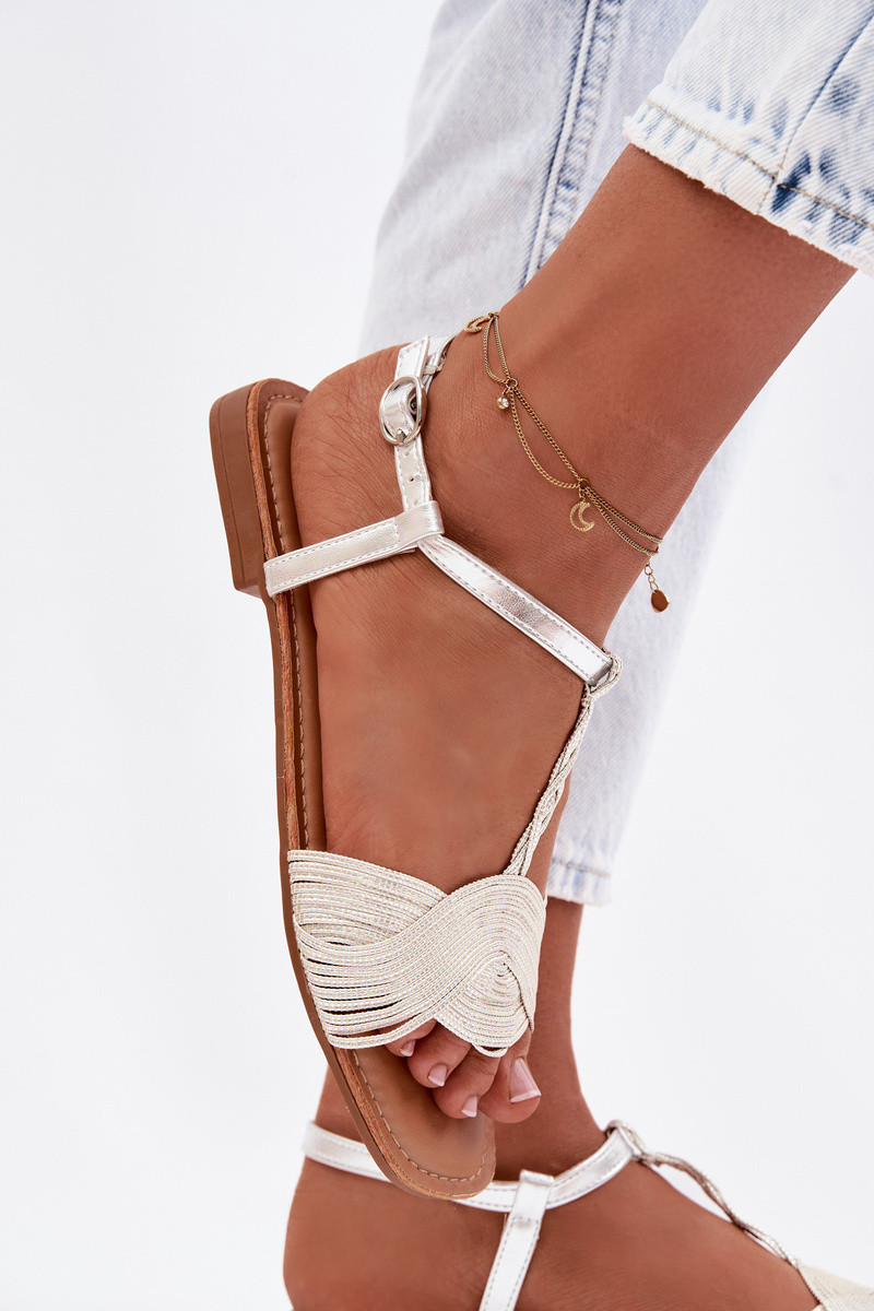 Chinelos femininos com plataforma e fivelas douradas, cor bege