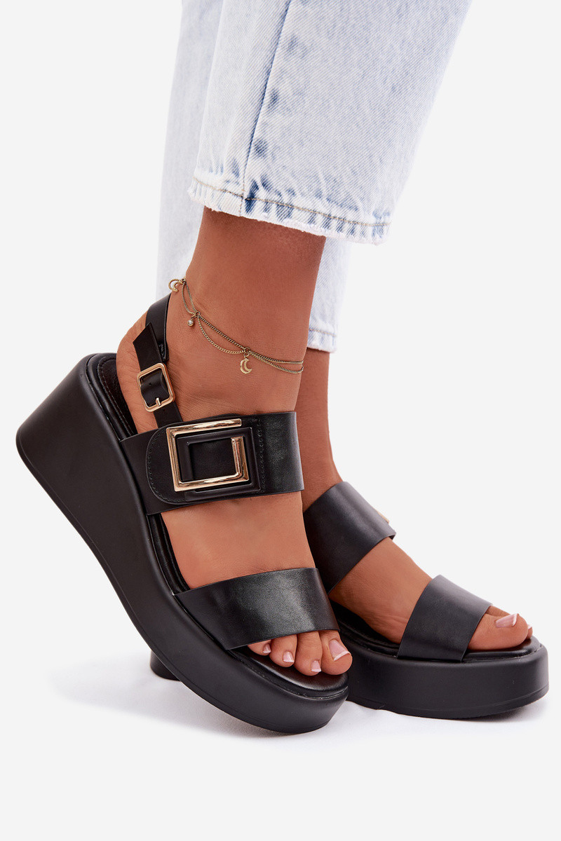 Sandálias femininas com plataforma e detalhes decorativos na cor preta Nelira