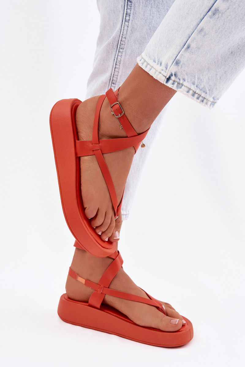 sandálias de dedo Feminino com uma plataforma cor laranja Gelira
