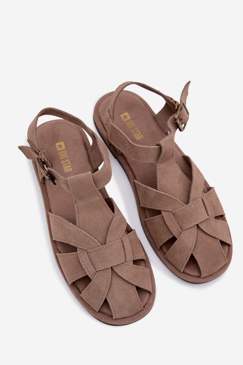 Sandálias planas de camurça femininas Big Star TT274250 na cor areia
