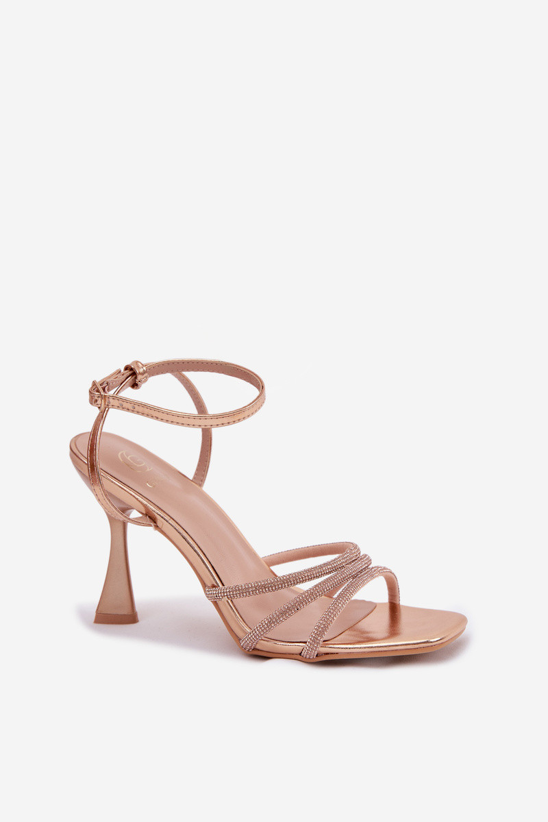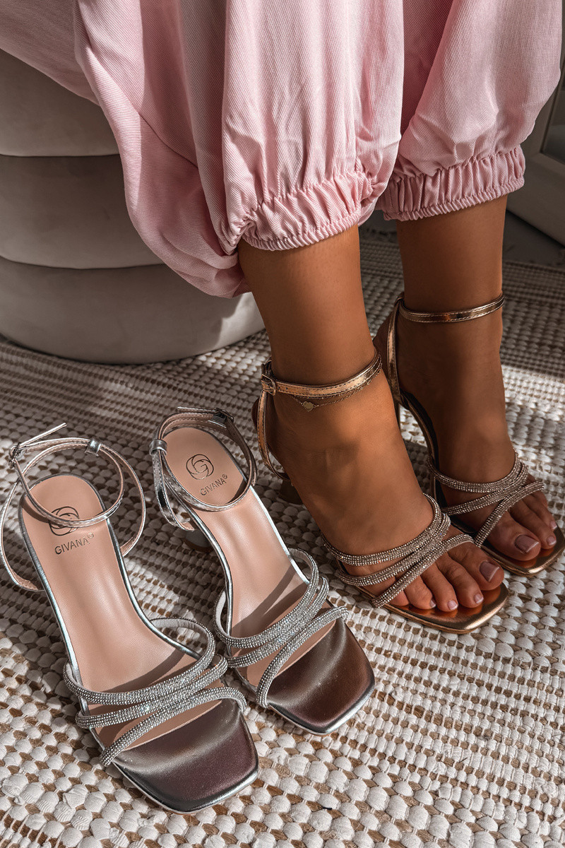 Sandálias femininas com saltos decoradas com tiras na cor champanhe Gedira