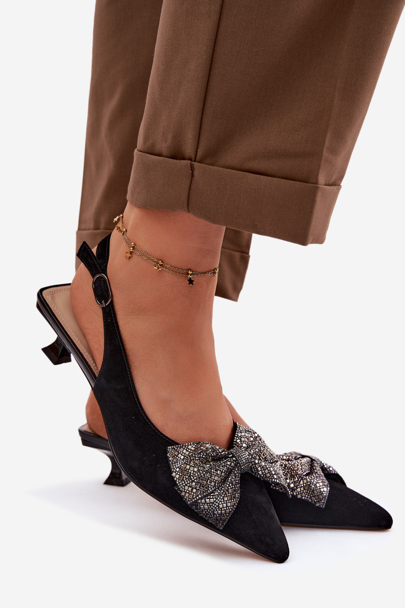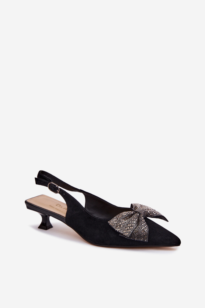 Sandálias de camurça com laços e salto D&A CR61-3130 preto