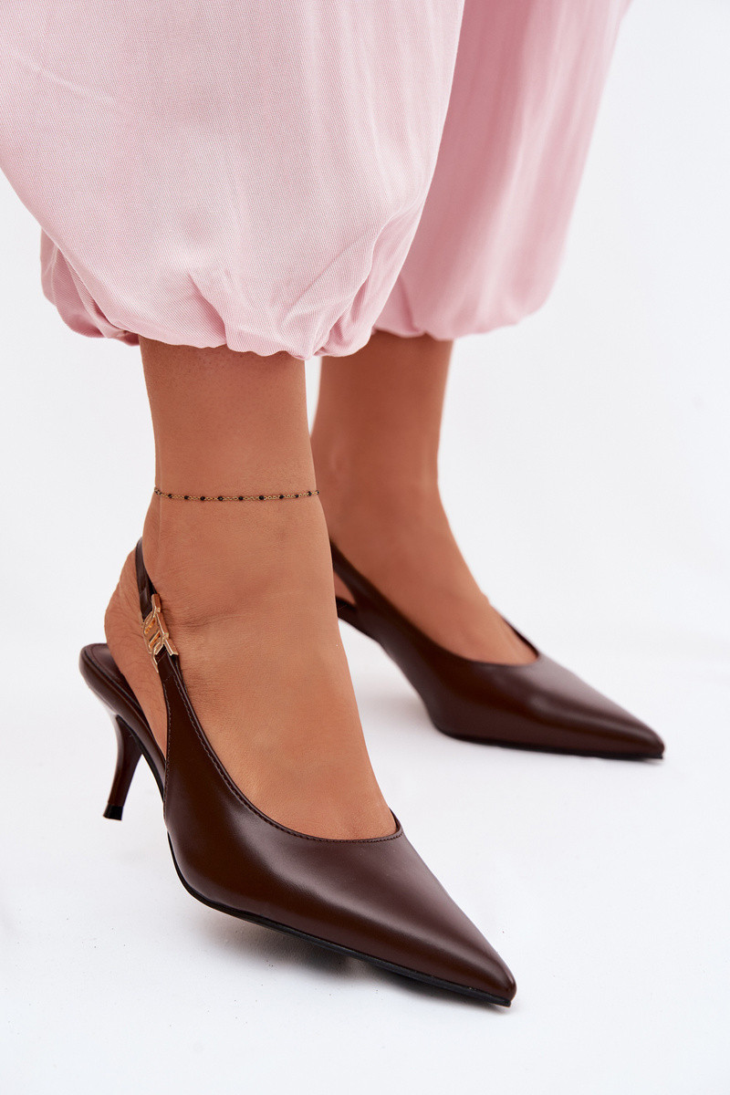 Sandálias de cor chocolate femininas de couro sintético com saltos finos Jelissey