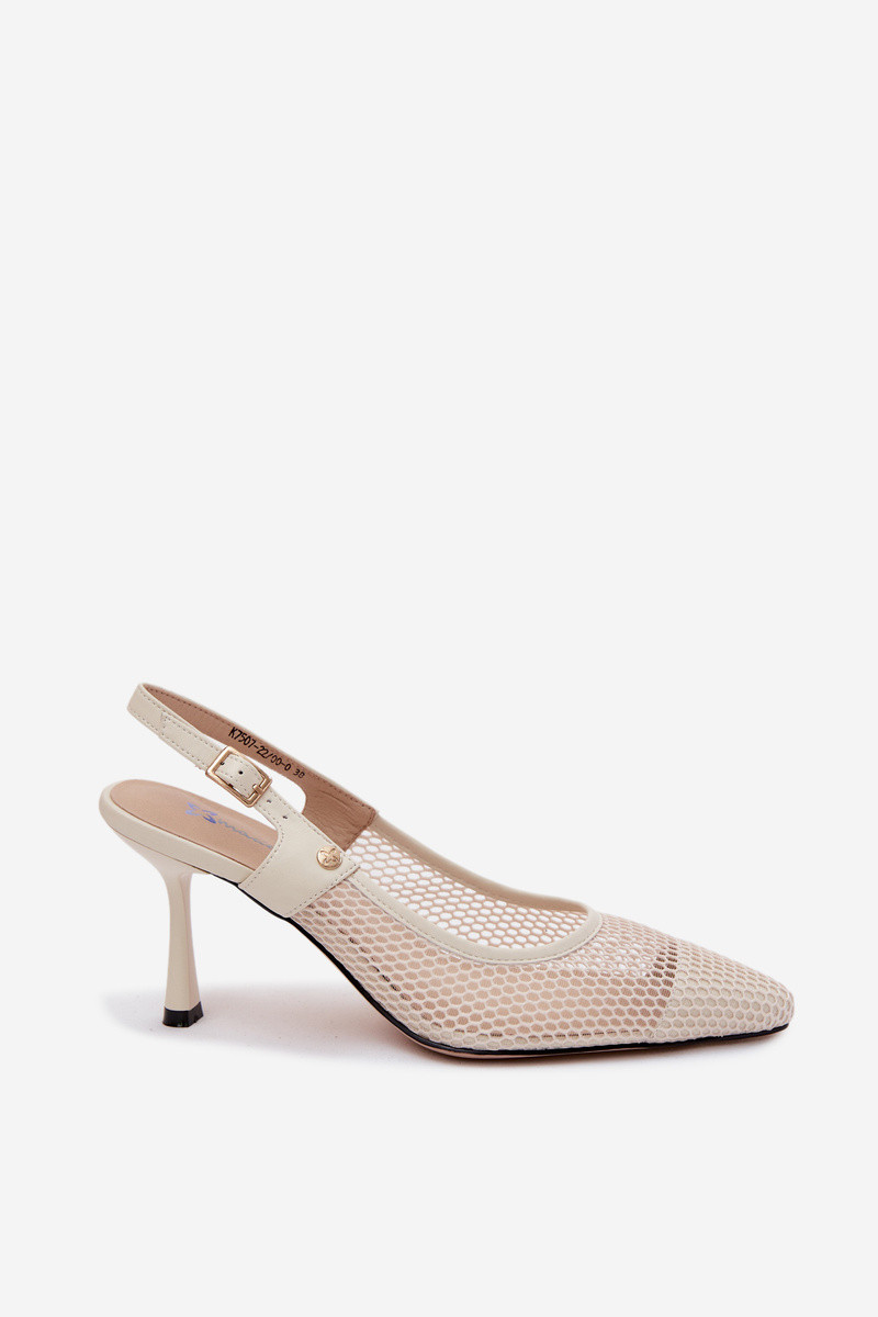 Pele Sandálias perfuradas Sapato Feminino com salto fino Tem que serciejka K7507-22 cor de marfim