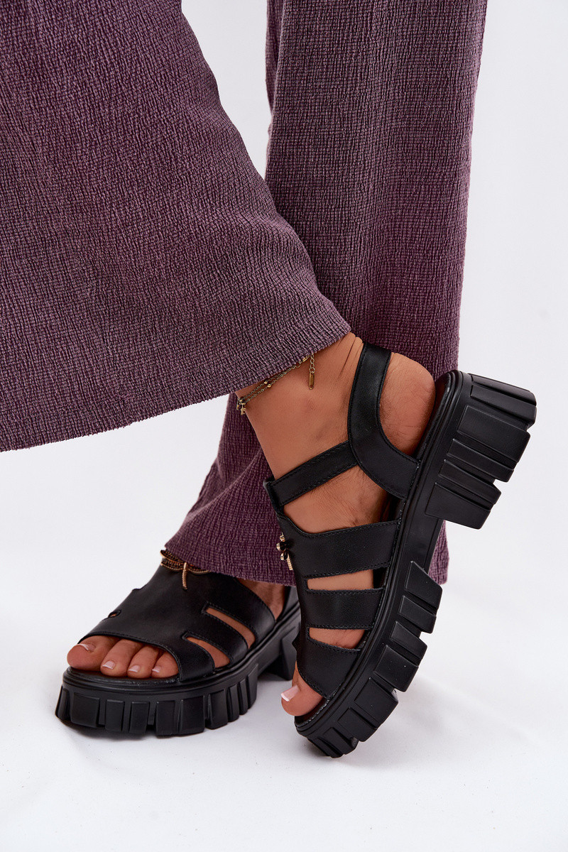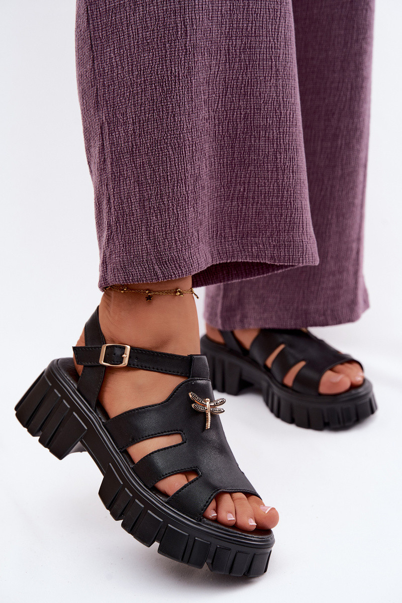 VINCEZASandálias femininas de plataforma com fivela Vinceza 79627, cor preta