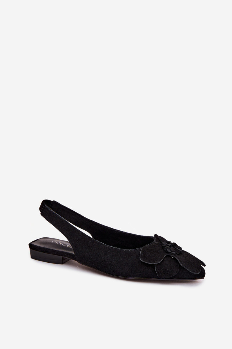 VINCEZASandálias pretas de camurça sintética femininas com salto largo e flor Vinceza 66951