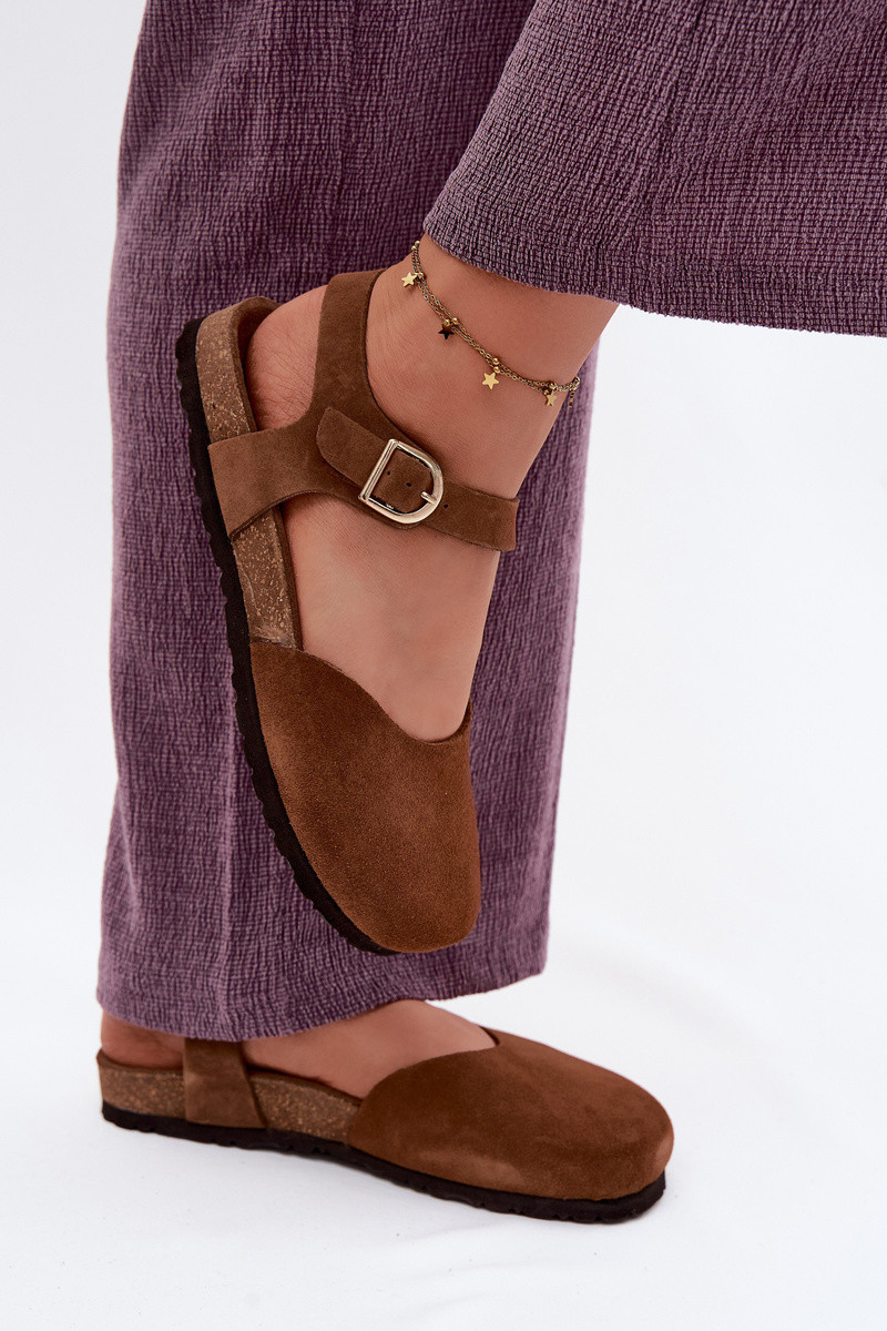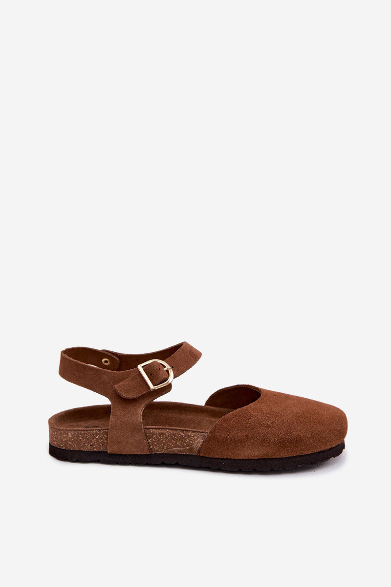 Sandálias de camurça de couro com dedos fechados Tai turiciejka H7365-02 marrons