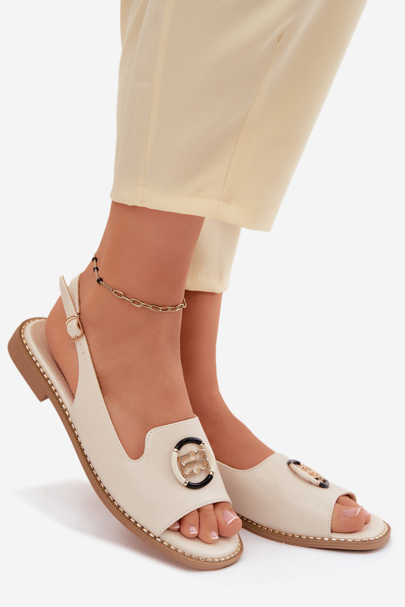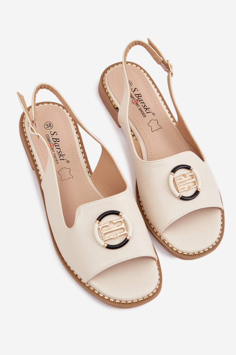 Sandálias femininas com saltos largos e ornamentos S.Barski KV61-6037 cor creme