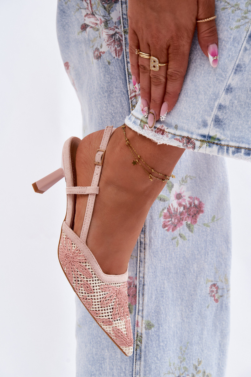 Sandálias de salto alto com flores na cor rosa Kelmira