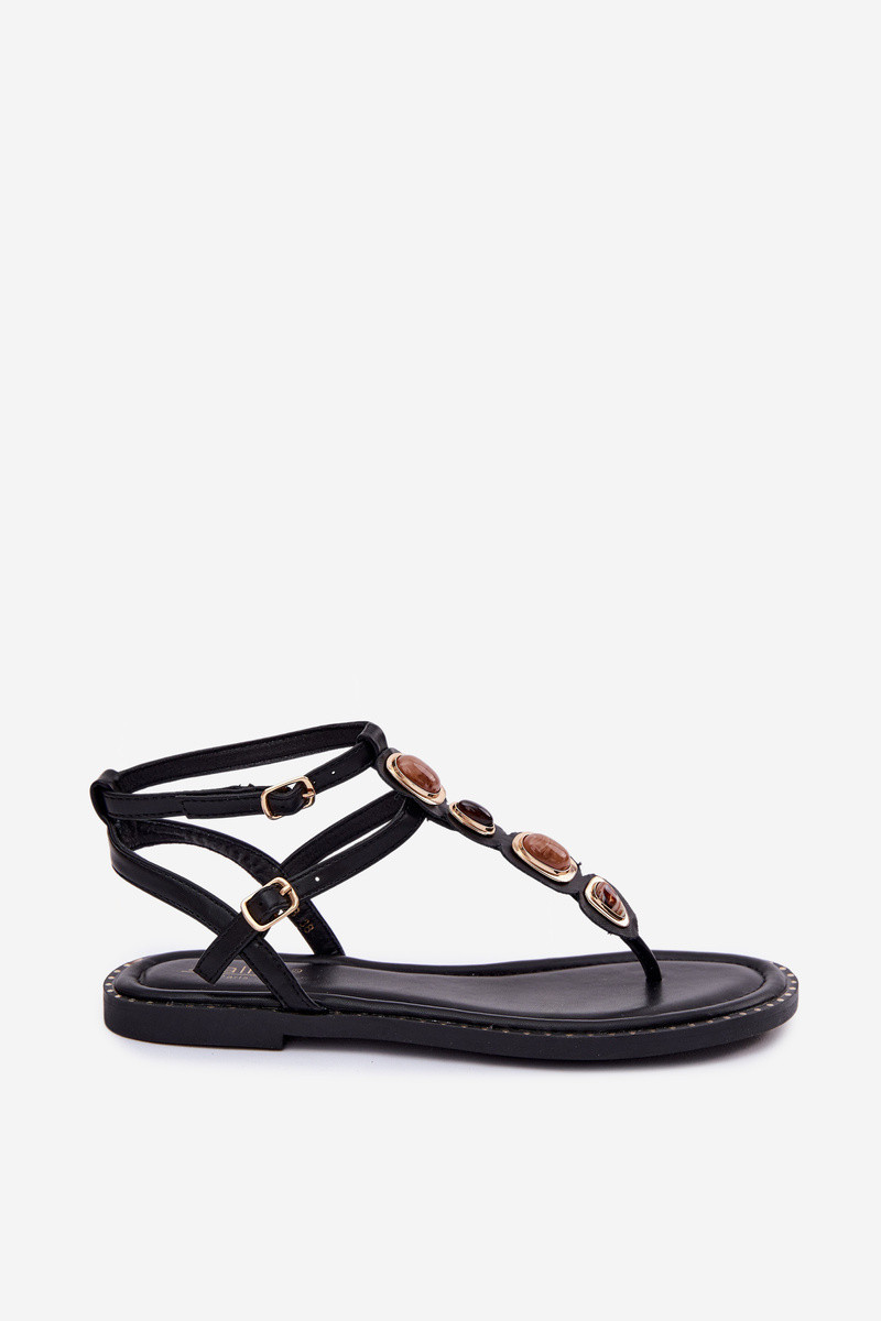 sandálias de dedo Apartamento feminino com lindos detalhes cor preta Dorena