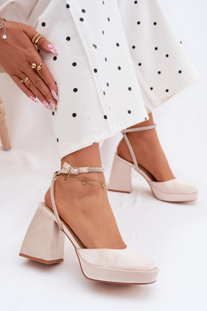 Sandálias femininas Em saltos enormes Typu Słupek Pasek com olhos brilhantes cor dourada Seraphina