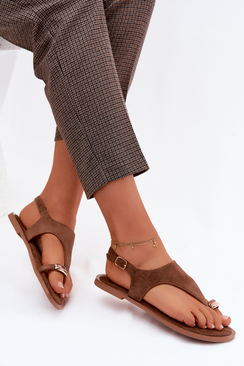 Sandálias rasteiras para mulheres Ze cor douradam Detalem de camurça ecológicaoParae...