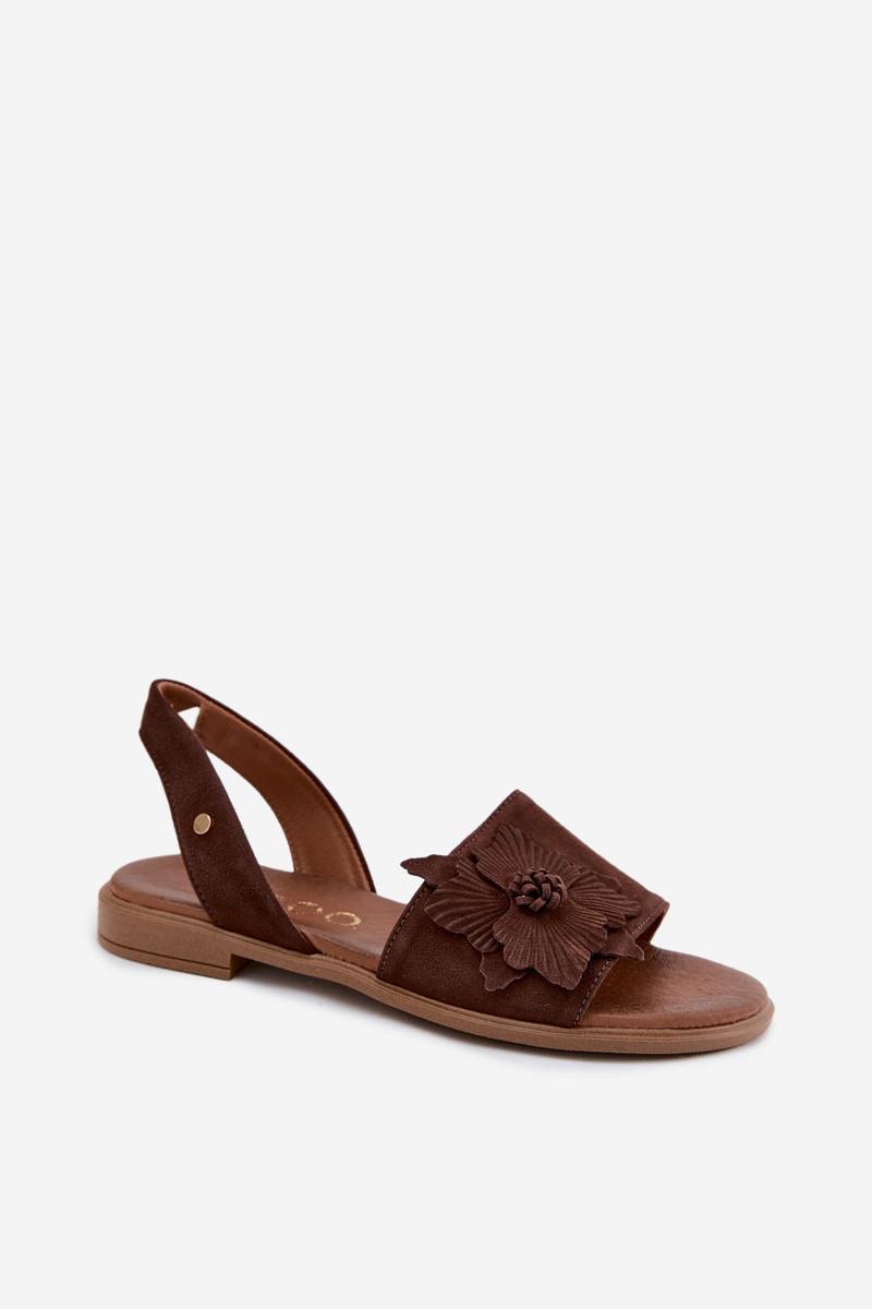Pele Sandálias de camurça com salto largo Com decorações Uma flor Zazoo 407471 cor marrom