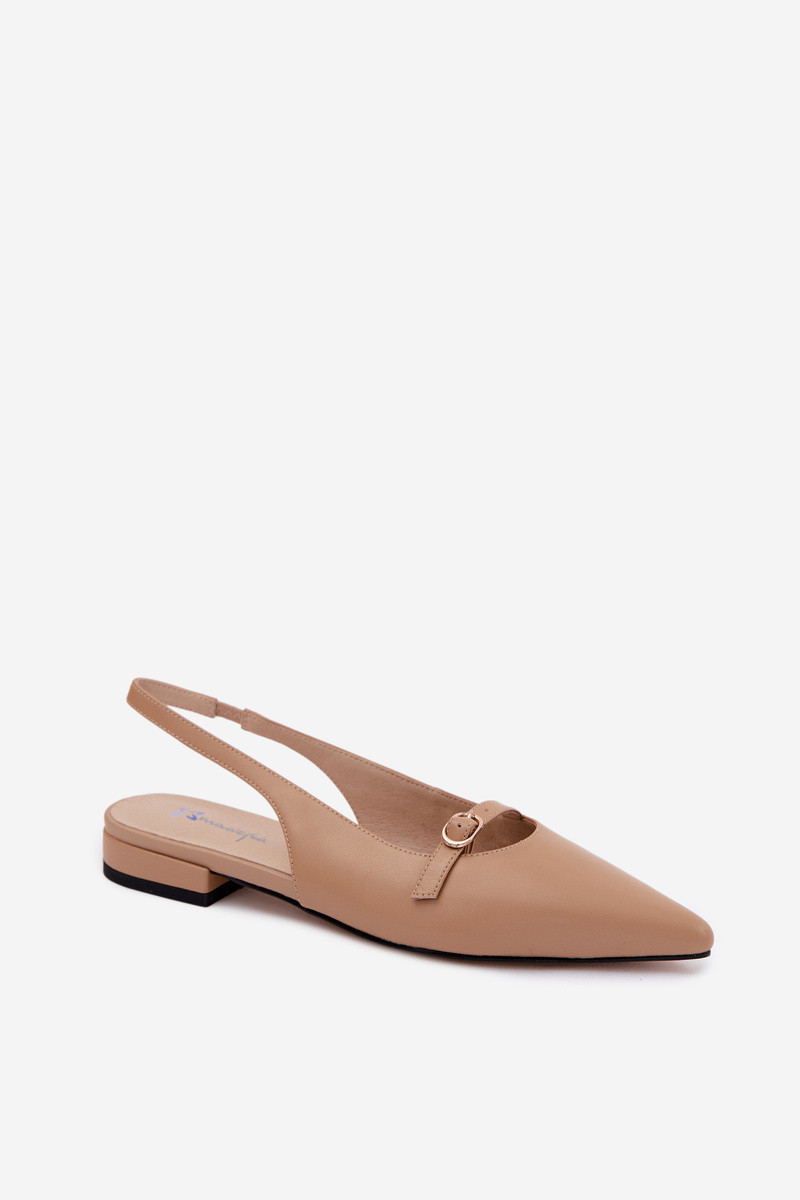 Sapatos femininos slip-on de couro natural S.Barski LR61-7092 na cor areia